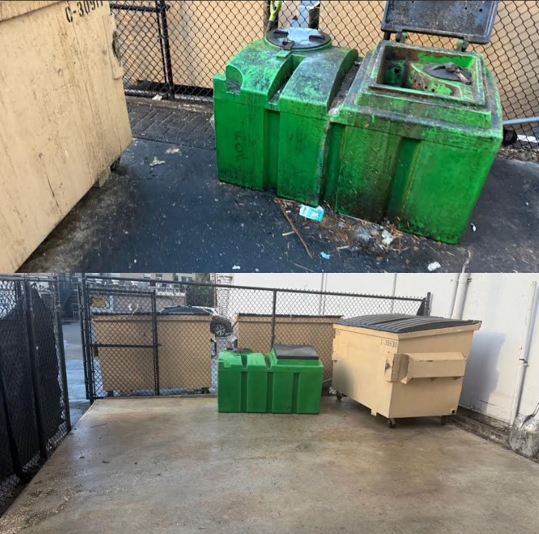 • Dumpster Area Cleaning & Deodorizing – Pressure wash, sanitize, and deodorize dumpster pads to eliminate harmful bacteria and unpleasant smells.